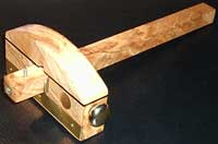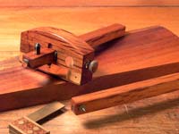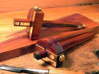 The first pair are a matched set of Mortise and Marking gauges in New guinea Rosewood. I've made about 70 or so gauges both wide and standard faced in all sorts of timbers but the best was made of Olive Bole (second picture)... it looks like marble. The third photo is a wide faced version that is made of Western Australian Sheoak with a pencil beam and a pin beam. The wide face makes using the gauge across the end grain of the timber much easier. All my marking gauges have an inlayed brass rub face.