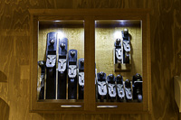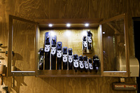 The dimensions are (H) 765mm X (W) 875mm X (D) 320mm. The dividers are Silver Ash. I used 5mm glass that was glued in with a thin silicone bead to help keep the doors flat. The cabinet is attached to the wall with 2 hefty french cleats. I fitted 3 LED down lights to give the planes a bit of sparkle.
