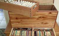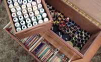 This box was a present to an artist after a visit to her studio. Her acrylic paints were stored all over the place. The carcase frame and feet are made of Rose Alder. The front and side panels are Camphor Laurel from a log I collected locally. The rear panel is ½" Silky Oak veneered ply. The dovetailed till is White Meranti. Silver Ash was used for the drawer sides & back.
